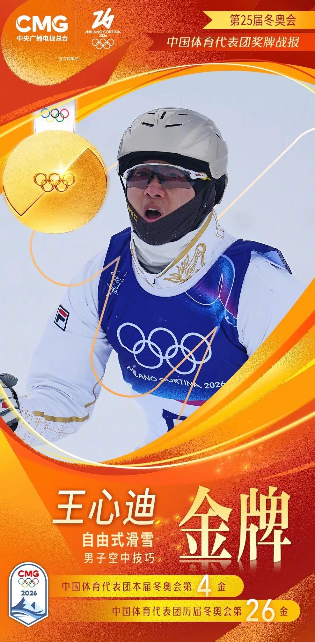 王心迪每一步都走得坚定而扎实。他的故事,才刚刚开始。文 |阿 晖当地时间2026年2月20日,米兰-科尔蒂纳冬奥会自由式滑雪男子空中技巧决赛现场,利维尼奥的风雪见证了一段荣耀时刻。中国选手王心迪纵身跃起,完成难度系数5.1的惊天一跳,以132.60分的高分摘得金牌,为中国队斩获本届冬奥会第...