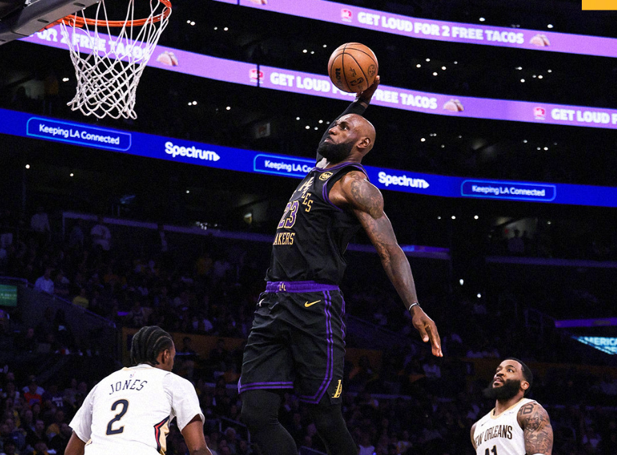 节末八村塁造犯规,肯纳德命中扳平三分球,小乔丹强硬补篮,三节打完时,湖人76-78鹈鹕。决战第四节,老詹助攻拉拉维亚上篮,艾顿抛投,穆雷三分球打破平衡,此后锡安和麦戈文斯带队打出小高潮,很快就拉开分差。中段海斯暴扣提振士气,里夫斯终于命中三分球。海斯被锡安一肘子直接干到观众席,脑袋嗡嗡的。此后里夫斯再中三分,东契奇抛投,一波12-0反超。此后詹姆斯继续反击,锡安连续强攻。最后2分钟,锡安上篮被帽,斯玛特命中关键三分球,自己都笑了:我也能进?