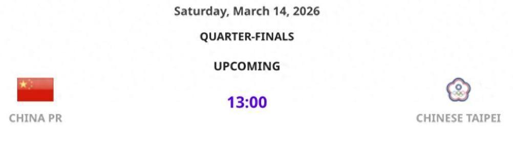 紧接着,淘汰赛对阵图正式公布,中国队的晋级路线瞬间变得清晰——1/4决赛将迎战中国台北,比赛定于3月14日13:00准时开哨。