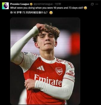 英超官方不禁亲自发文提到:吧友们,你们16岁零73天时在做什么