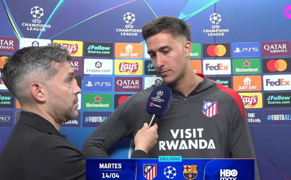 欧冠1/4决赛首回合,马竞客场2-0战胜巴萨,马竞门将穆索赛后接受了TNT体育墨西哥频道的采访。